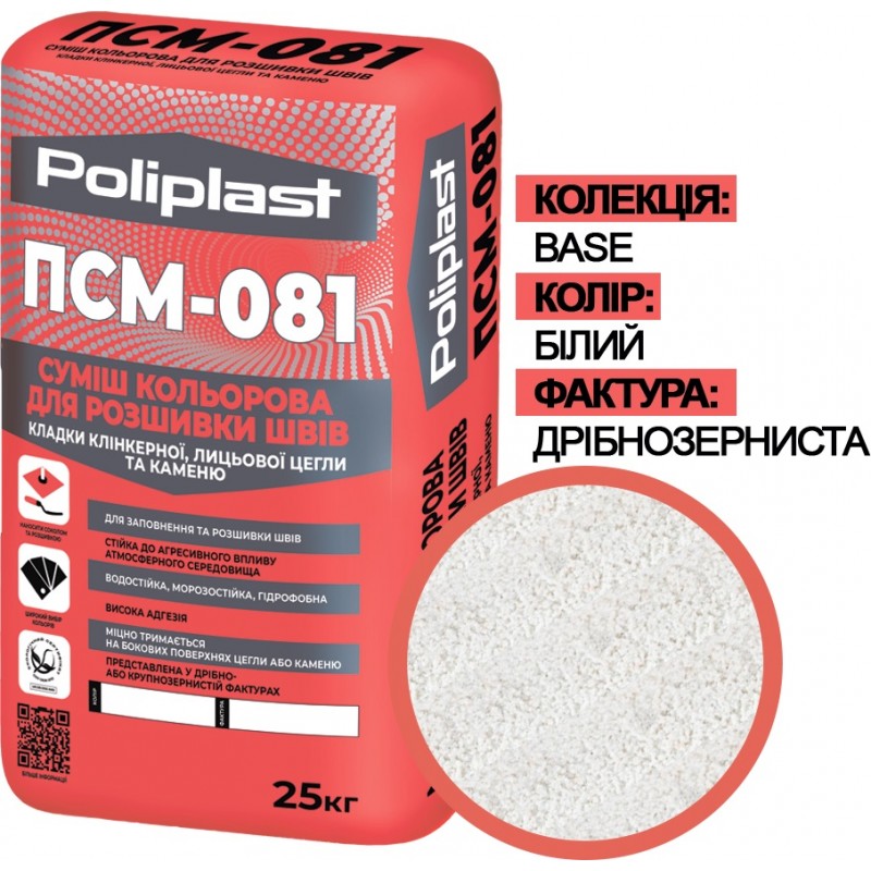 ПСМ-081 - сухая цветная смесь для заполнения и расшивки швов кладки клинкерного, керамического, силикатного лицевого кирпича, натурального и искусственного камня и других стеновых материалов внутри и снаружи помещений.
