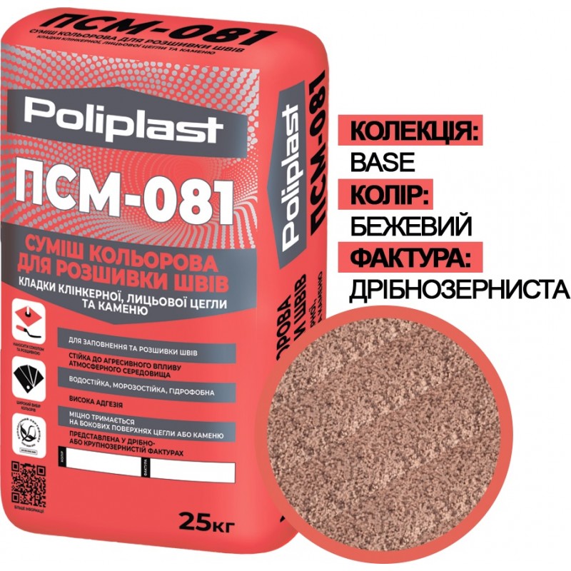 ПСМ-081 - сухая цветная смесь для заполнения и расшивки швов кладки клинкерного, керамического, силикатного лицевого кирпича, натурального и искусственного камня и других стеновых материалов внутри и снаружи помещений.