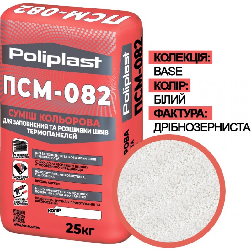 ПСМ-082 - сухая цветная смесь для заполнения и расшивки швов термопанелей и других облицовочных материалов (кладки клинкерного, керамического, силикатного лицевого кирпича, натурального и искусственного камня, облицовочной плитки и других стеновых материалов) шириной до 20 мм между облицовочными материалами внутри и снаружи помещений.