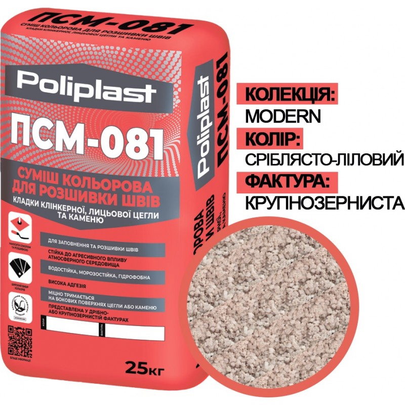ПСМ-081 - сухая цветная смесь для заполнения и расшивки швов кладки клинкерного, керамического, силикатного лицевого кирпича, натурального и искусственного камня и других стеновых материалов внутри и снаружи помещений.