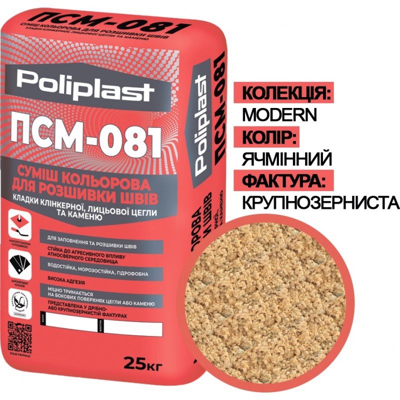 ПСМ-081 - сухая цветная смесь для заполнения и расшивки швов кладки клинкерного, керамического, силикатного лицевого кирпича, натурального и искусственного камня и других стеновых материалов внутри и снаружи помещений.