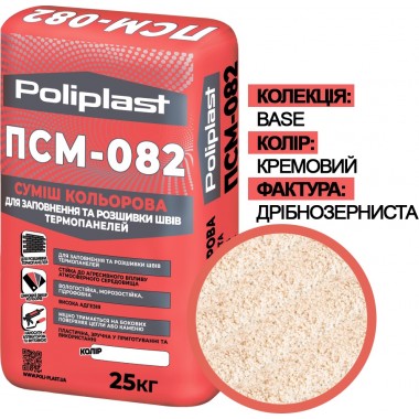 ПСМ-082 - суха кольорова суміш для заповнення та розшивки швів термопанелей та інших облицювальних матеріалів (кладки клінкерної, керамічної, силікатної лицьової цегли, натурального та штучного каменю, облицювальної плитки та інших стінових матеріалів) шириною до 20 мм між облицювальними матеріалами всередині та всередені приміщень.