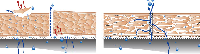 При екструдуванні структура плитки не ушкоджується, зберігаючи взаємозалежну мережу повітряних капілярів. Вода, що потрапила, може випаровуватися через природні канали, мінімально залишаючись у матеріалі до настання морозів. Для молекул води залишається простір для розширення, що не псує кераміку.